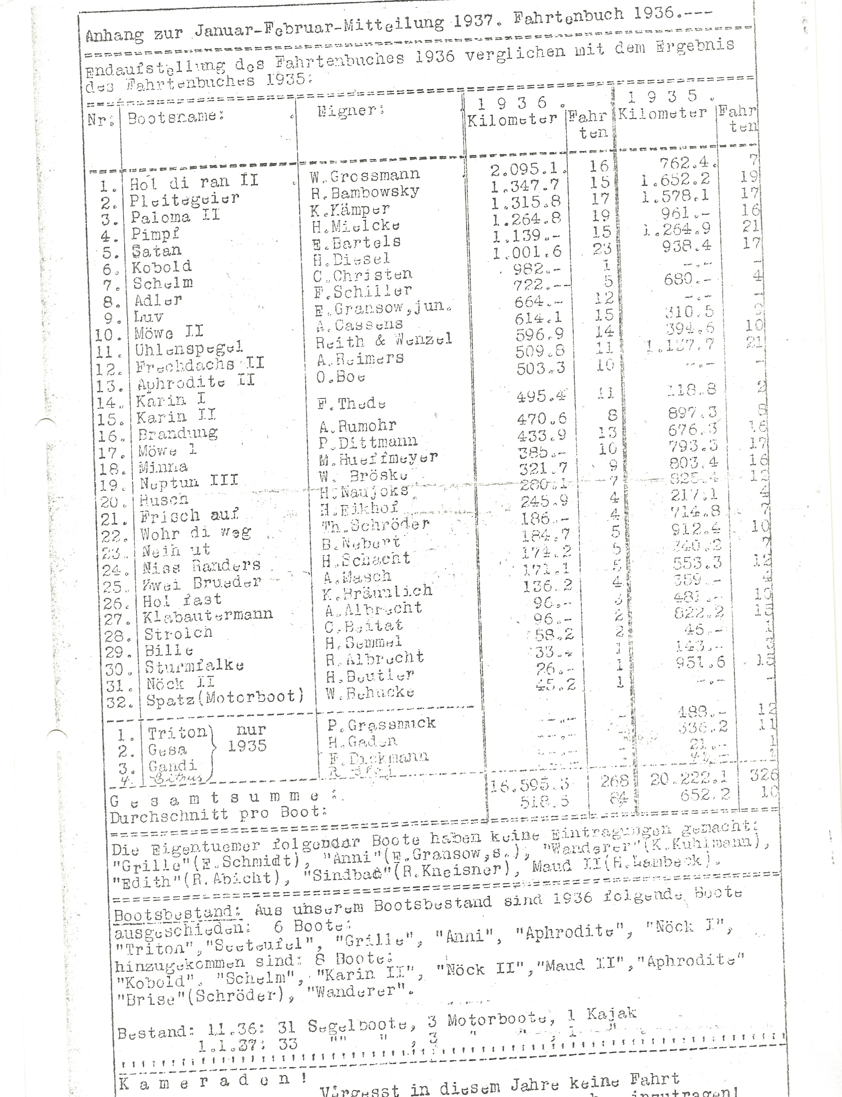 Der Verein wuchs, Hein Garbers baute seine „Windspiel III“ aus Stahl, Jan Libnow „Albatros“ und Jan Hitzwebel „Ayesha“ noch in Holz. In den Jahren 1935 bis 1937 war Hein Garbers mit seiner „Windspiel“ auf Regatten erfolgreich. Im Mai 1938 startete er zu seiner erfolgreichen Atlantiküberquerung. Während des Krieges segelte er mehrfach in spezieller Mission zwischen Südamerika und Europa hin und her.