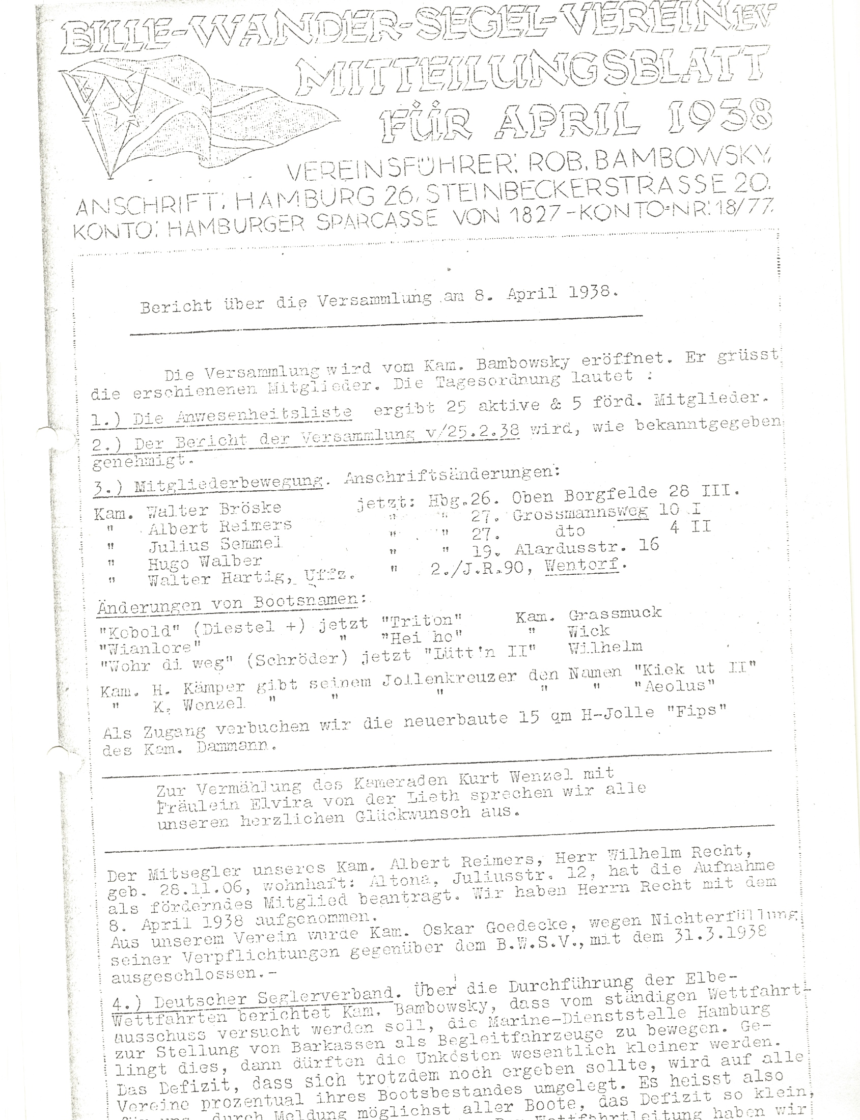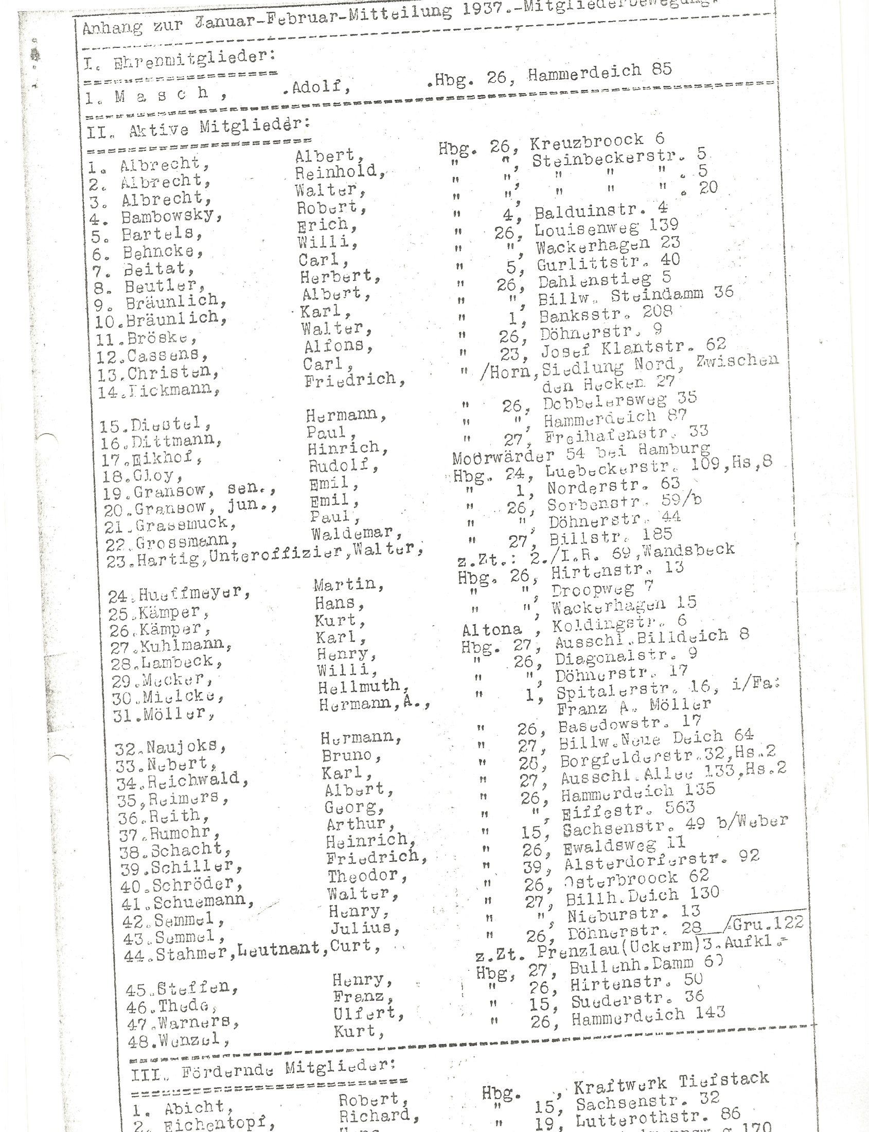 Wir haben die Vereinsmitteilungen von 1937, 1938 zusammentragen können.