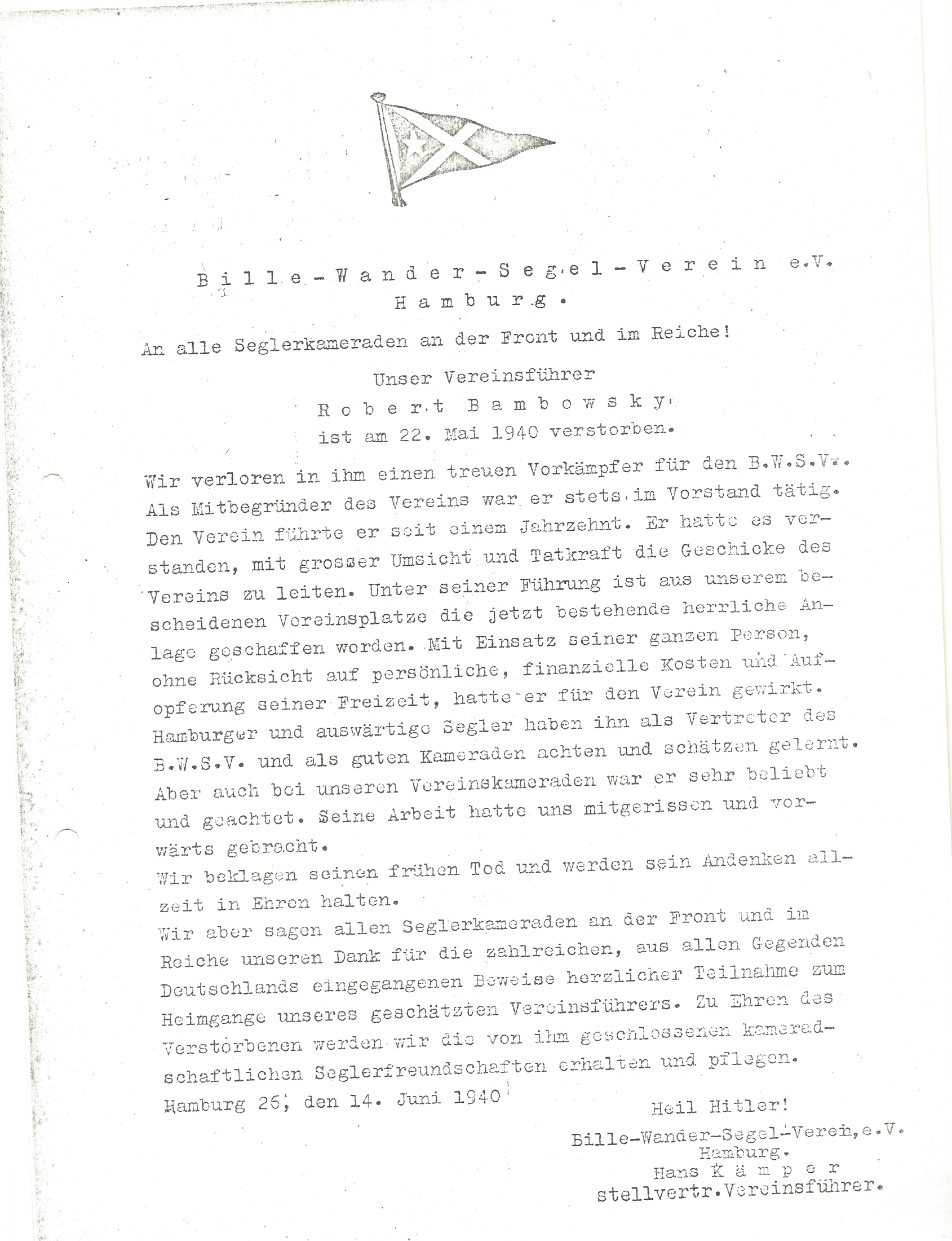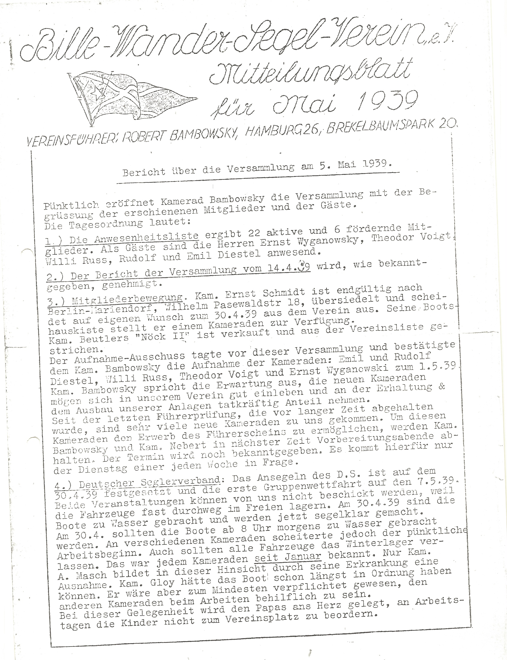 In Hamburg wurde eine Reihe neuer Segelvereine gegründet: so 1921 der Bille- Wander- Segel- Verein und 1923 die Elb- Segler- Vereinigung.