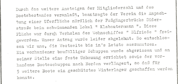 1977 Umzug des Vereines an das Holzhafenufer.